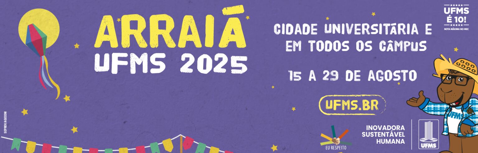 Todos os câmpus da Universidade estarão em festa de 15 a 29 de agosto. O tradicional Arraiá UFMS é realizado desde 2017 e celebra a volta às aulas do segundo semestre letivo, com atrações musicais e comidas típicas. O evento é gratuito, aberto ao público e integra a programação da campanha Eu Respeito.