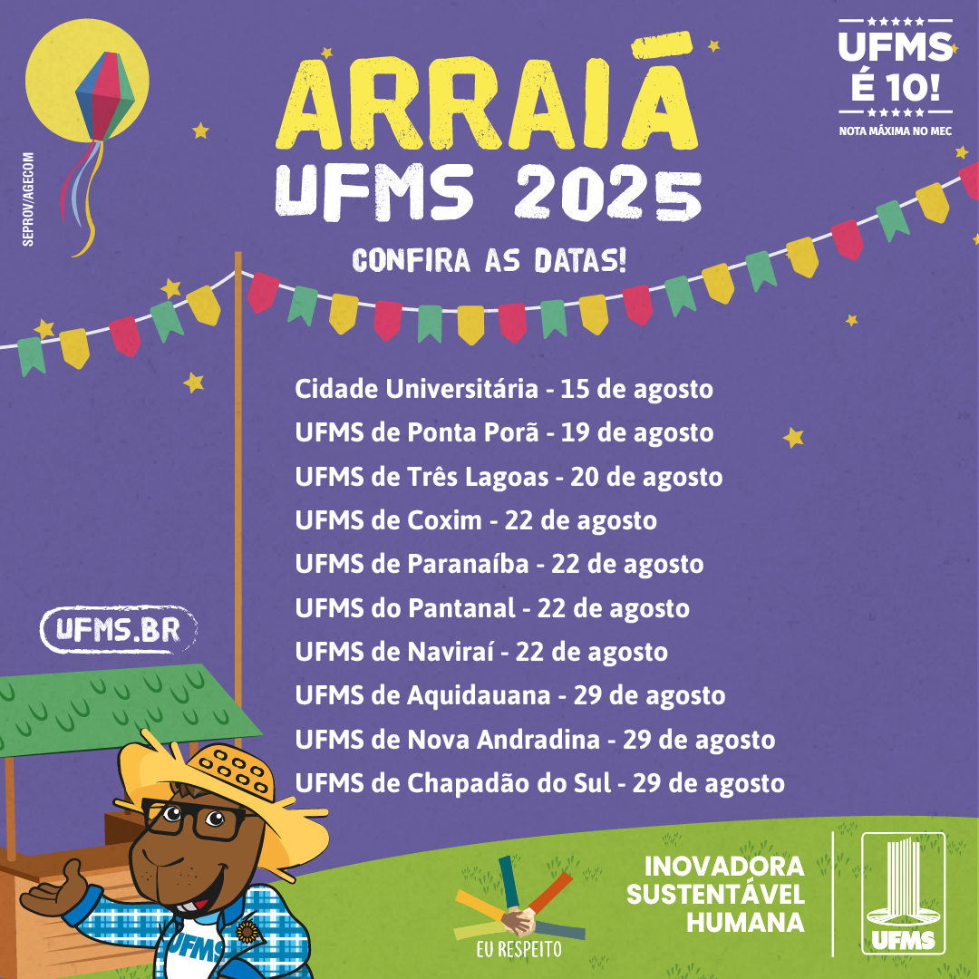 O Câmpus da UFMS de Ponta Porã promove o Arraiá no dia 19, enquanto o Câmpus da UFMS de Três Lagoas reunirá a comunidade universitária no dia 20.