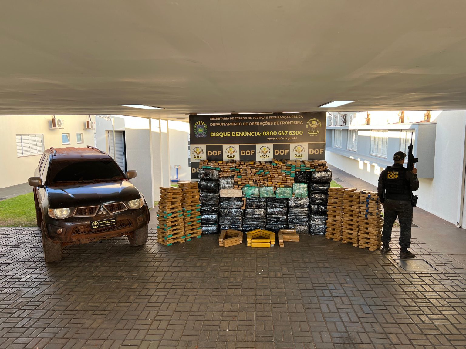 Policiais militares do DOF (Departamento de Operações de Fronteira) recuperaram nesta segunda-feira (7), em Rio Brilhante, um veículo Mitsubishi Pajero com 1,3 tonelada de drogas. Na ação, ninguém foi preso.